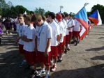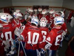 Čekání v týmových špalírech za plochou za stadionem se docela protáhlo, protože německý tým zřejmě ještě jede na středoevropský čas tj. -1 hod. Z tradičních proslovů všech pořadatelů, zástupců lakrosových svazů a zástupců města bych vypíchl rozhodčovský slib v podání Barbary Zelenay, která je nám pro svoje bratislavské rodiště nejblíže ze všech arbitrů. Poté se začaly tribuny pomalu zaplňovat a my jsme se šli chystat na hlavní událost večera zápas proti domácím Finům. Hrdinou okamžiků těsně před zápasem se stal head coach Hody, který za neuvěřitelných 15min zaběhl trasu stadion hotel a zpět pro zapomenuté chrániče jednoho z našich útočných tahounů.